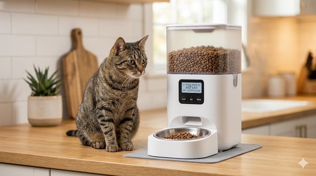 最新の自動給餌器はすごく進化してるにゃ!AIカメラ搭載やマイクロチップ認識のモデルもあって、スマホから遠隔操作もできるにゃ。おすすめ5台を厳選して紹介するにゃ!
